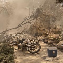 In front of a house on the Be'eri kibbutz, Israel, where more than a hundred...